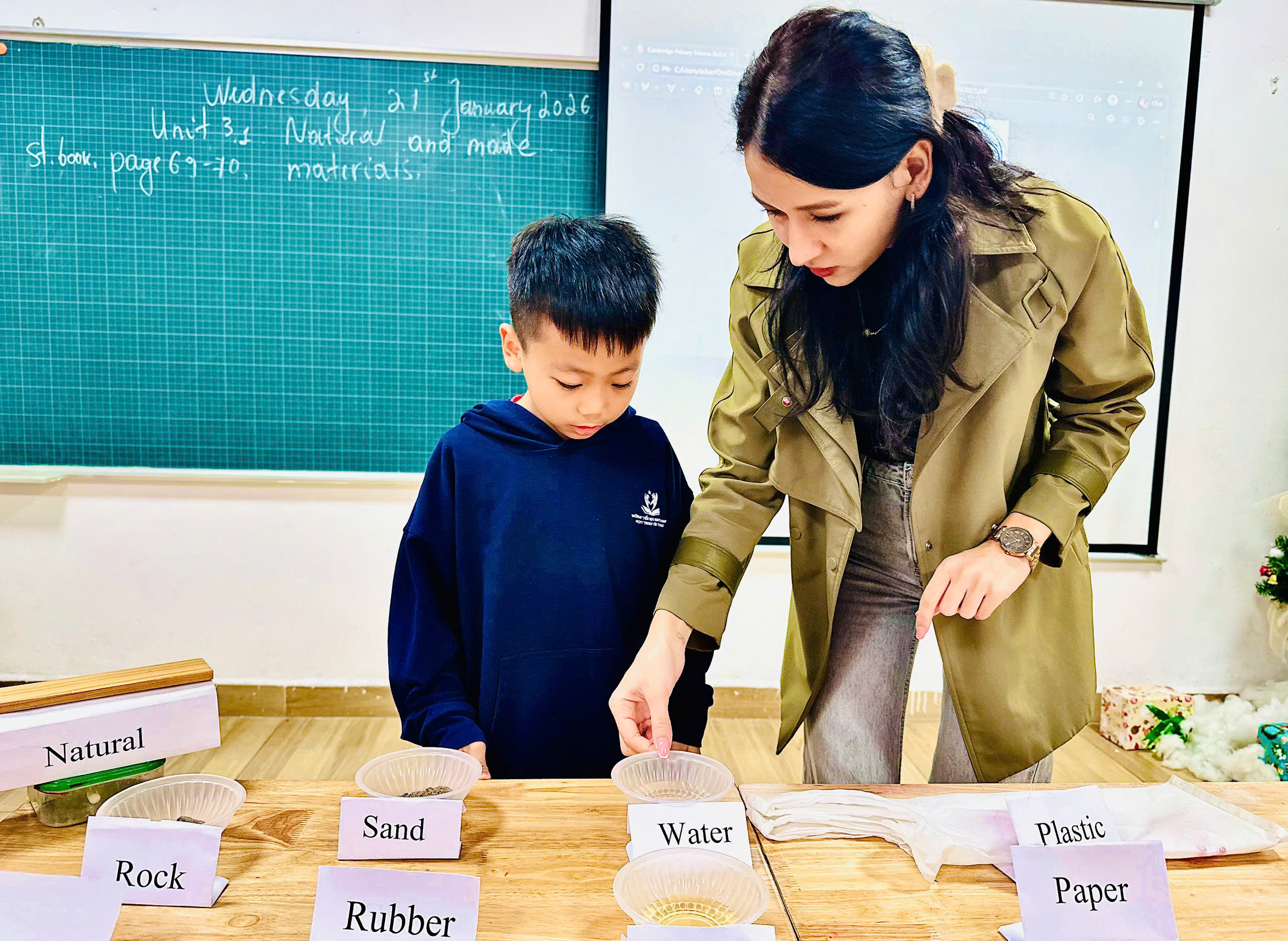 Hãy cùng bước vào tiết học "Natural and made Materials" tuần này của lớp 2A1 để xem bí quyết "Học đi đôi với Hành" đã biến những từ vựng khô khan thành ký ức sống động của học sinh Nguyễn Khuyến như thế nào nhé!