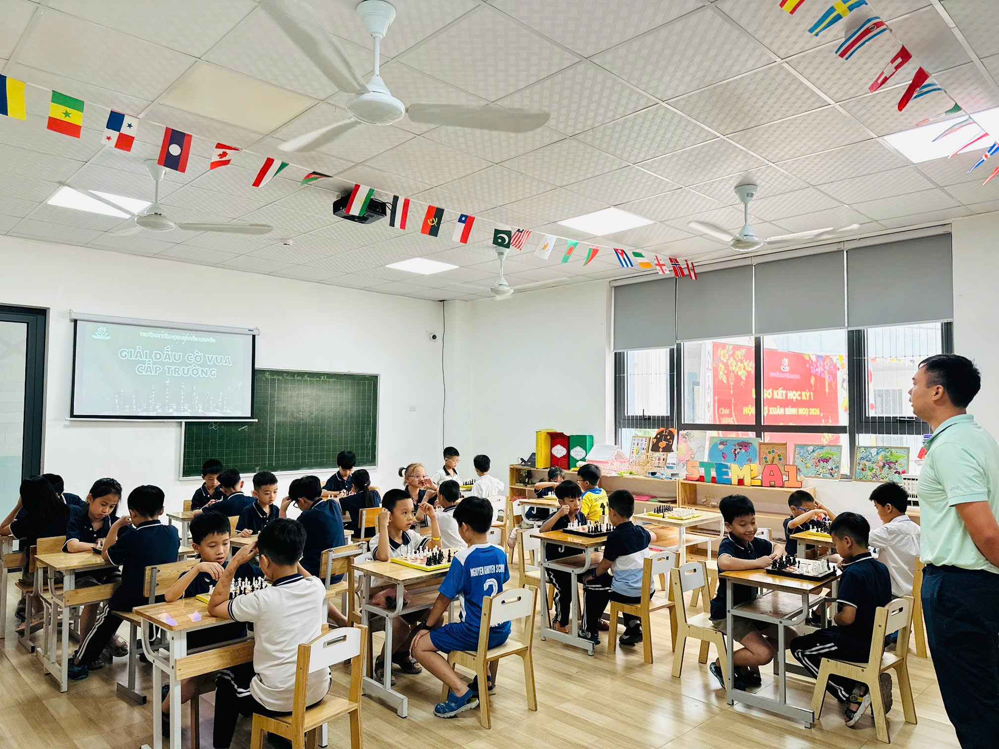 “Giải đấu cờ vua cấp trường 2026” tại trường Tiểu Học Nguyễn Khuyến đã diễn ra ngày 17/04/2026, với những trận đấu trí căng thẳng, đầy kịch tính, giằng co đến từng nhịp thở, căng thẳng đến từng phút giây.