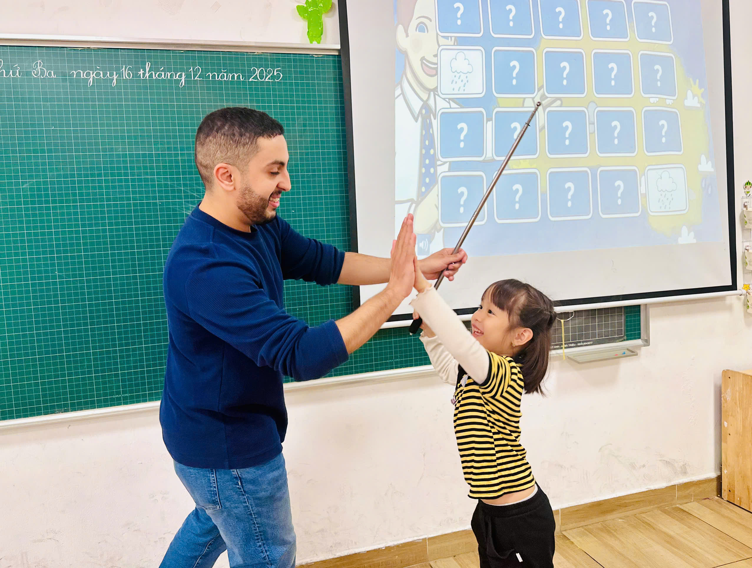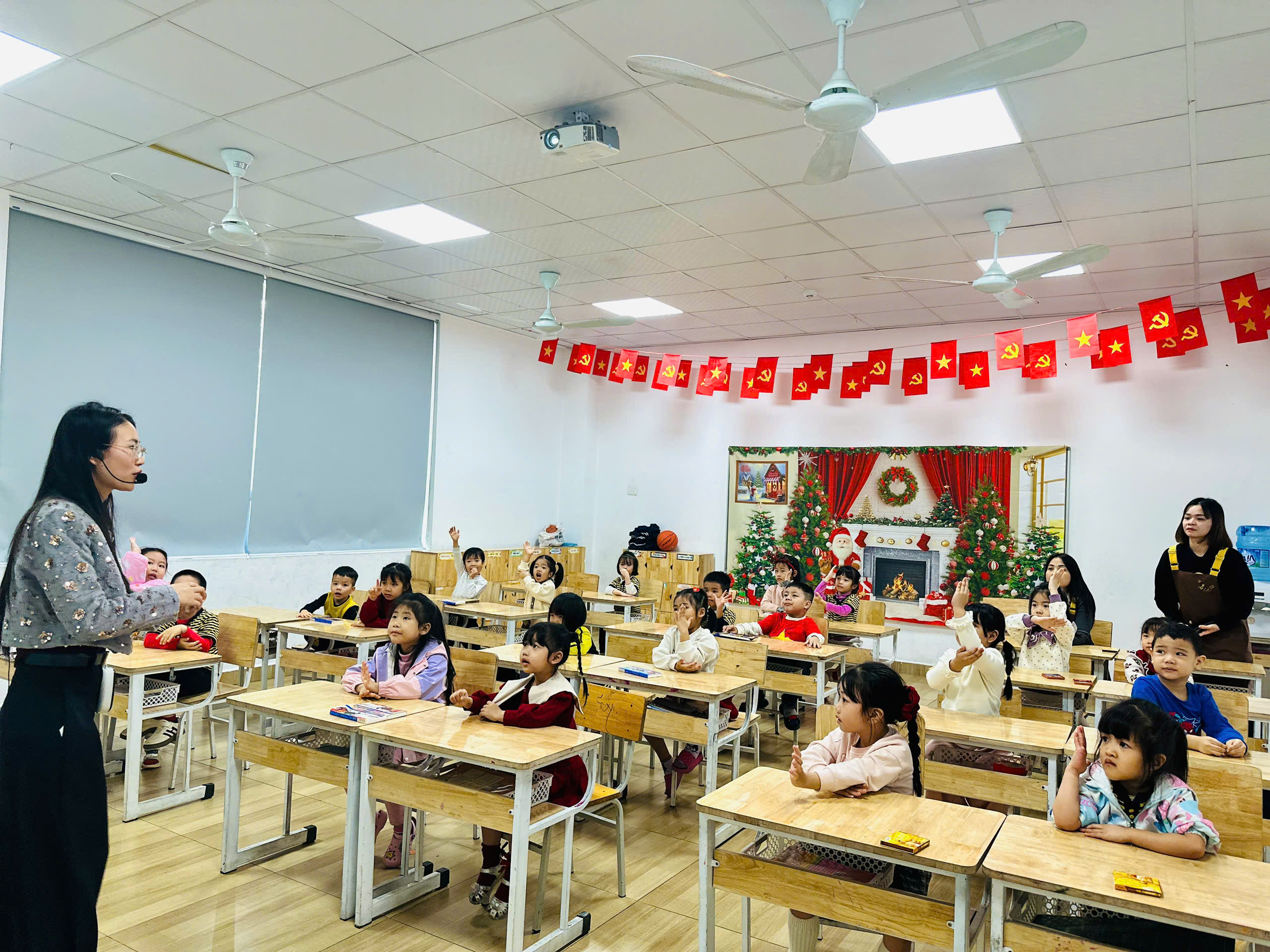 GIỜ TIẾNG ANH SÔI ĐỘNG: Tiếng cười giòn tan của các em bé vang lên qua những bài hát và trò chơi tương tác vui nhộn cùng giáo viên.