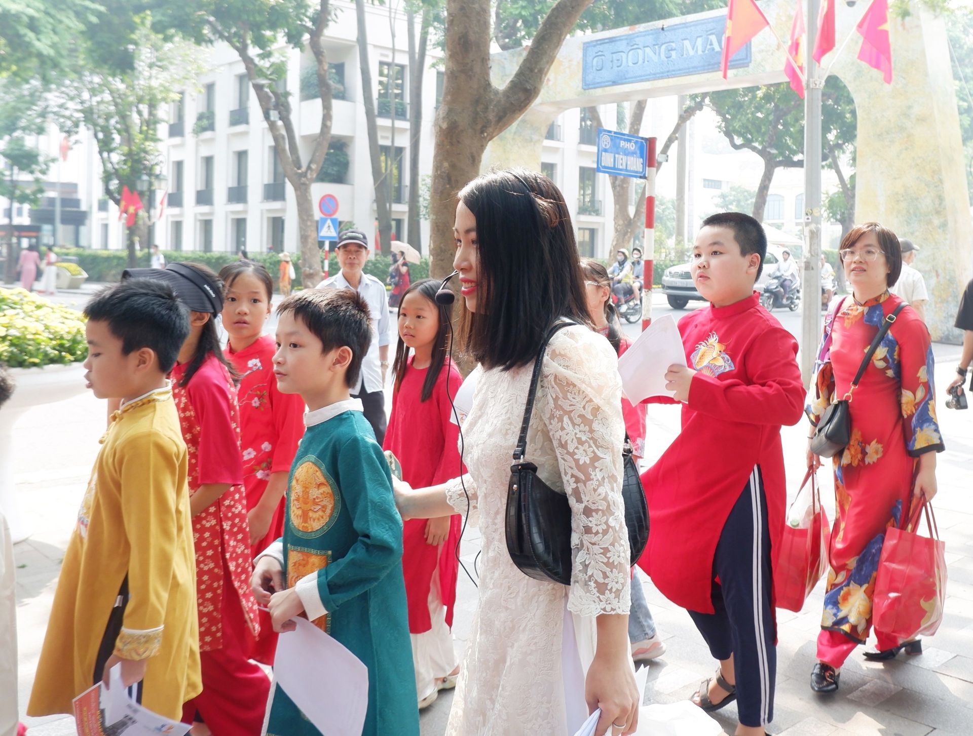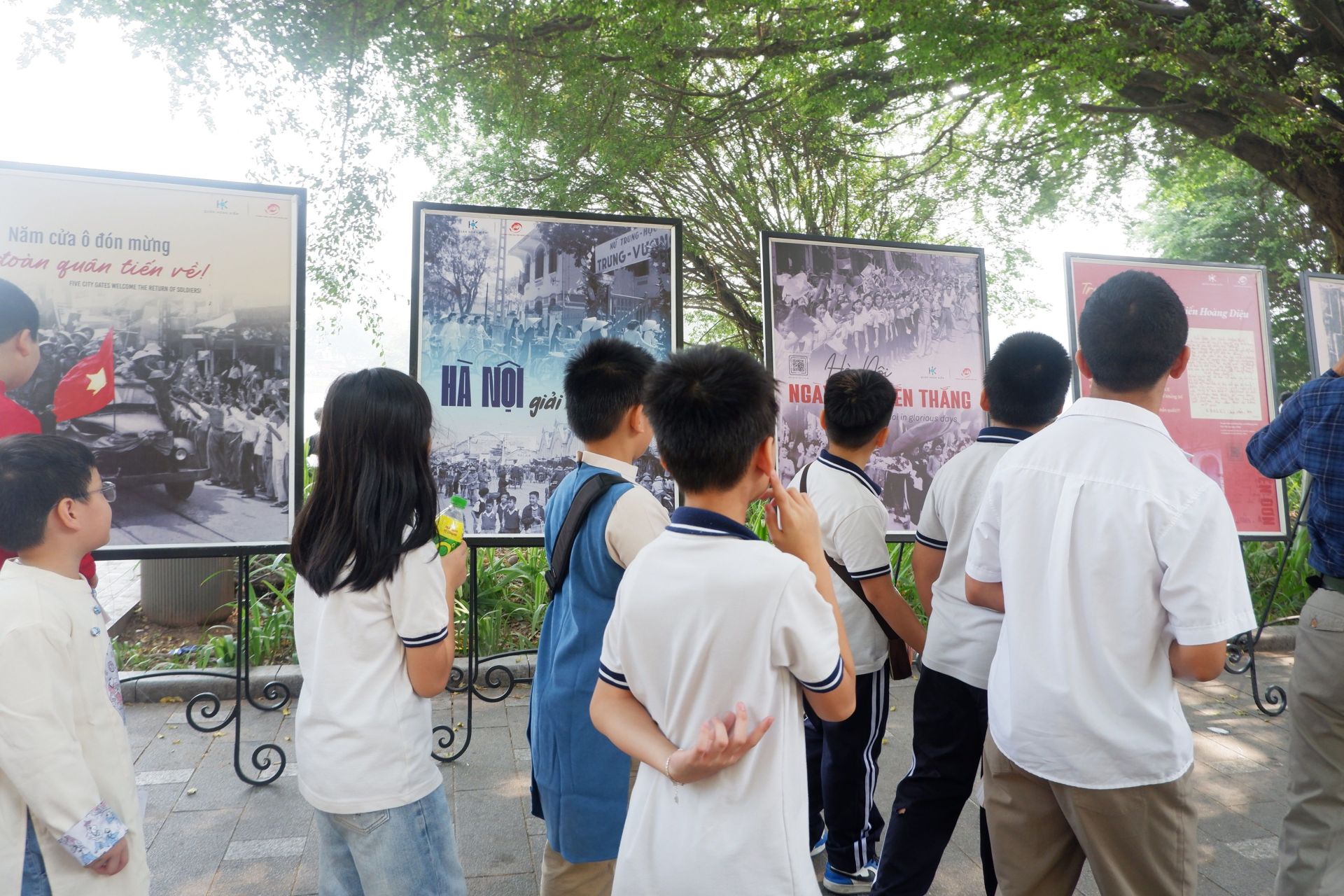 Hà Nội được trang hoàng rực rỡ cờ hoa phấp phới. Các bạn nhỏ vô cùng thích thú và trầm trồ với những cảnh phục dựng thủ đô Hà Nội ngày giải phóng năm 1954. Các thầy cô giáo đã giới thiệu, chia sẻ bối cảnh lịch sử, đưa các bạn học sinh trải qua cảm giác hồi hộp, sống động nhưng cũng rất tự hào của ngày thu lịch sử.