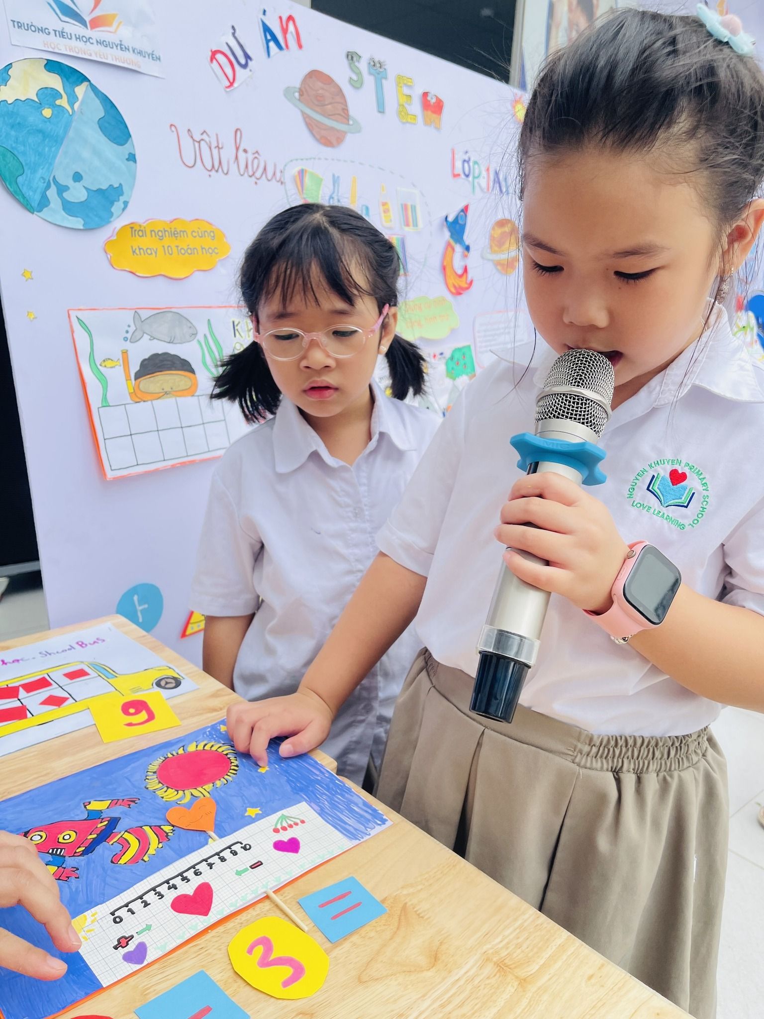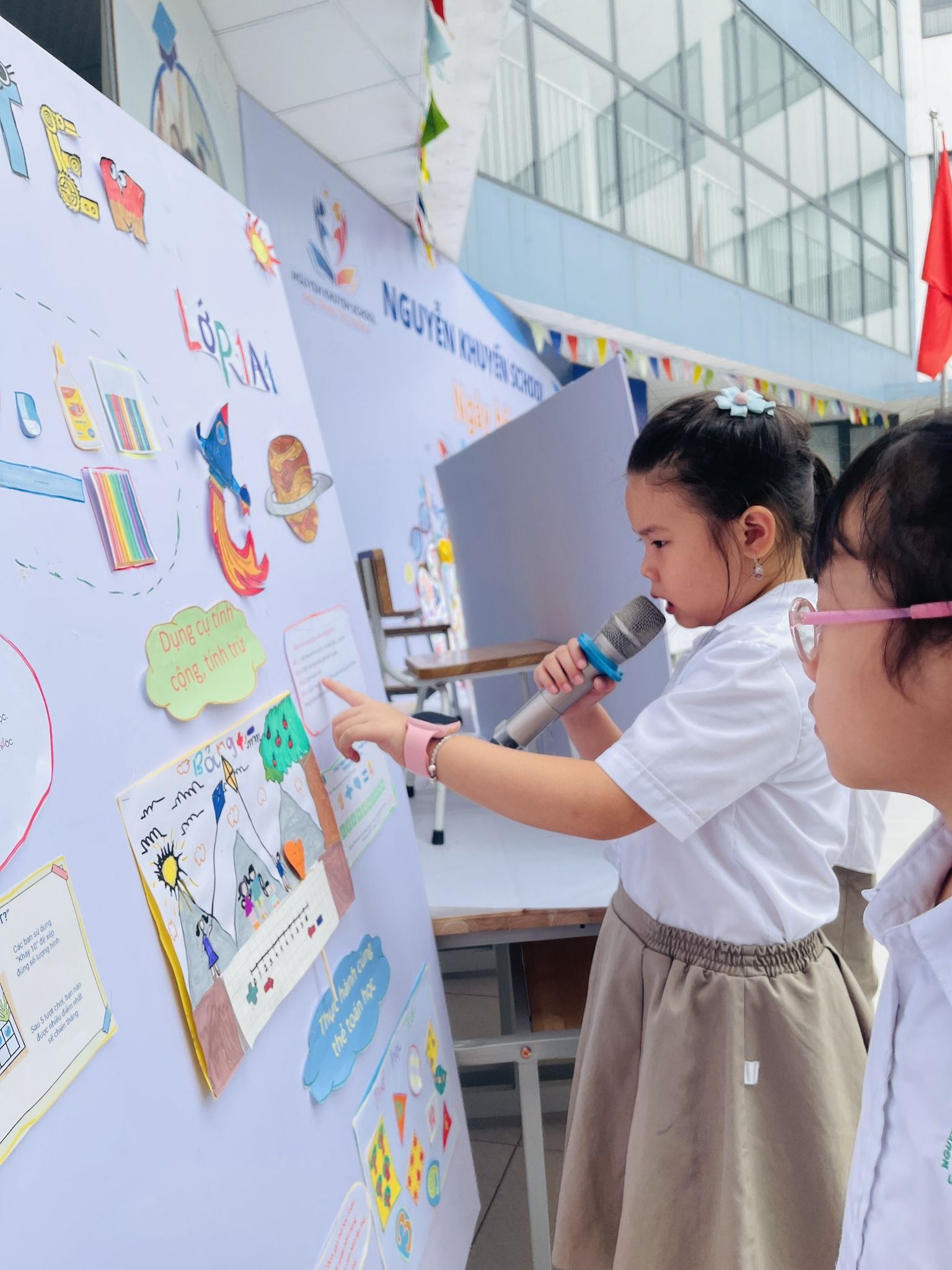 Mỗi lớp đều có từ 2 đến 3 nhóm học sinh tham gia thuyết trình giới thiệu về sản phẩm STEM của lớp mình. Đây là cơ hội để các bé rèn luyện kỹ năng trình bày trước đám đông, nâng cao sự tự tin và bản lĩnh sân khấu của mình.