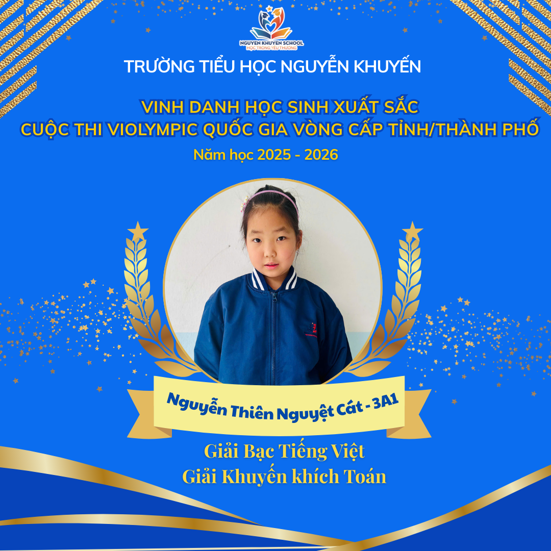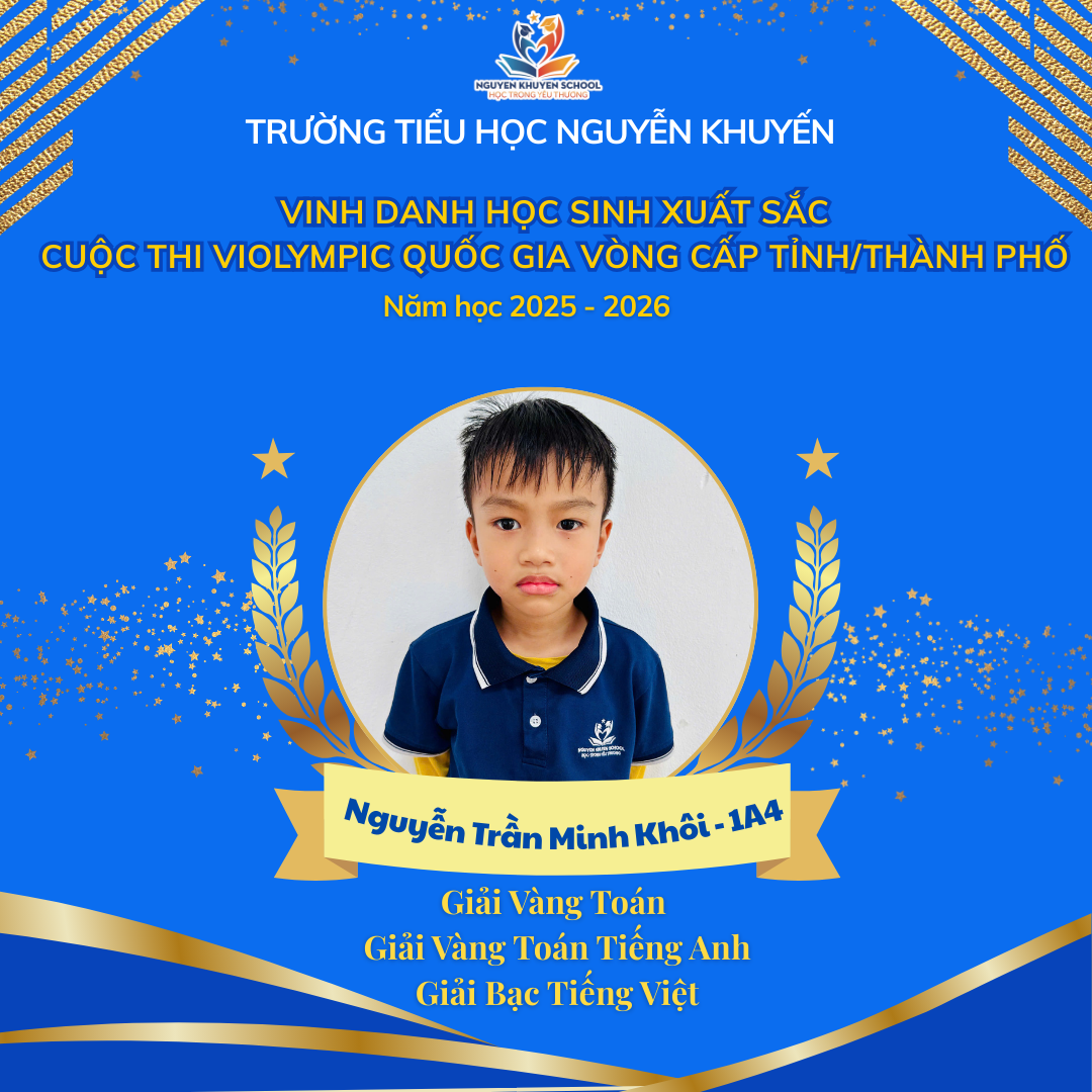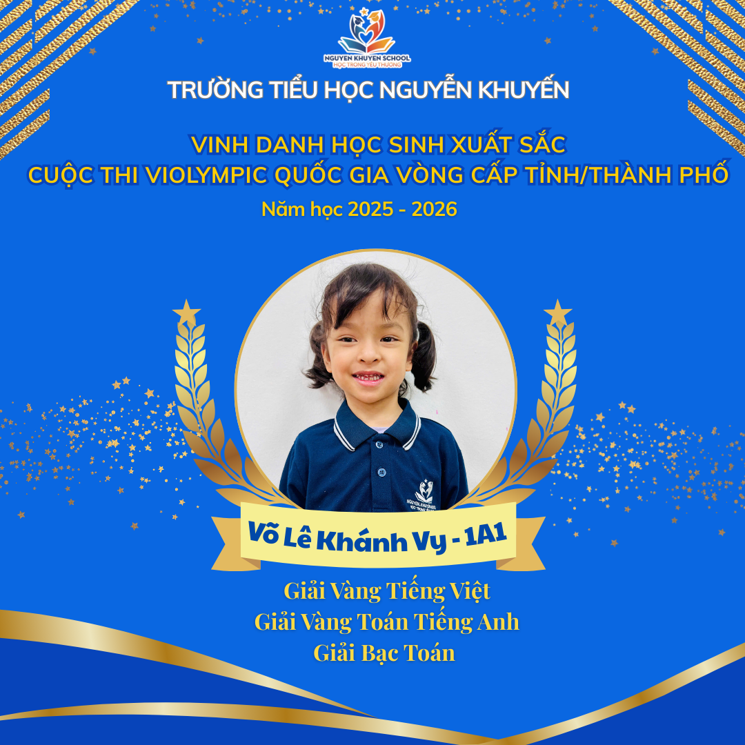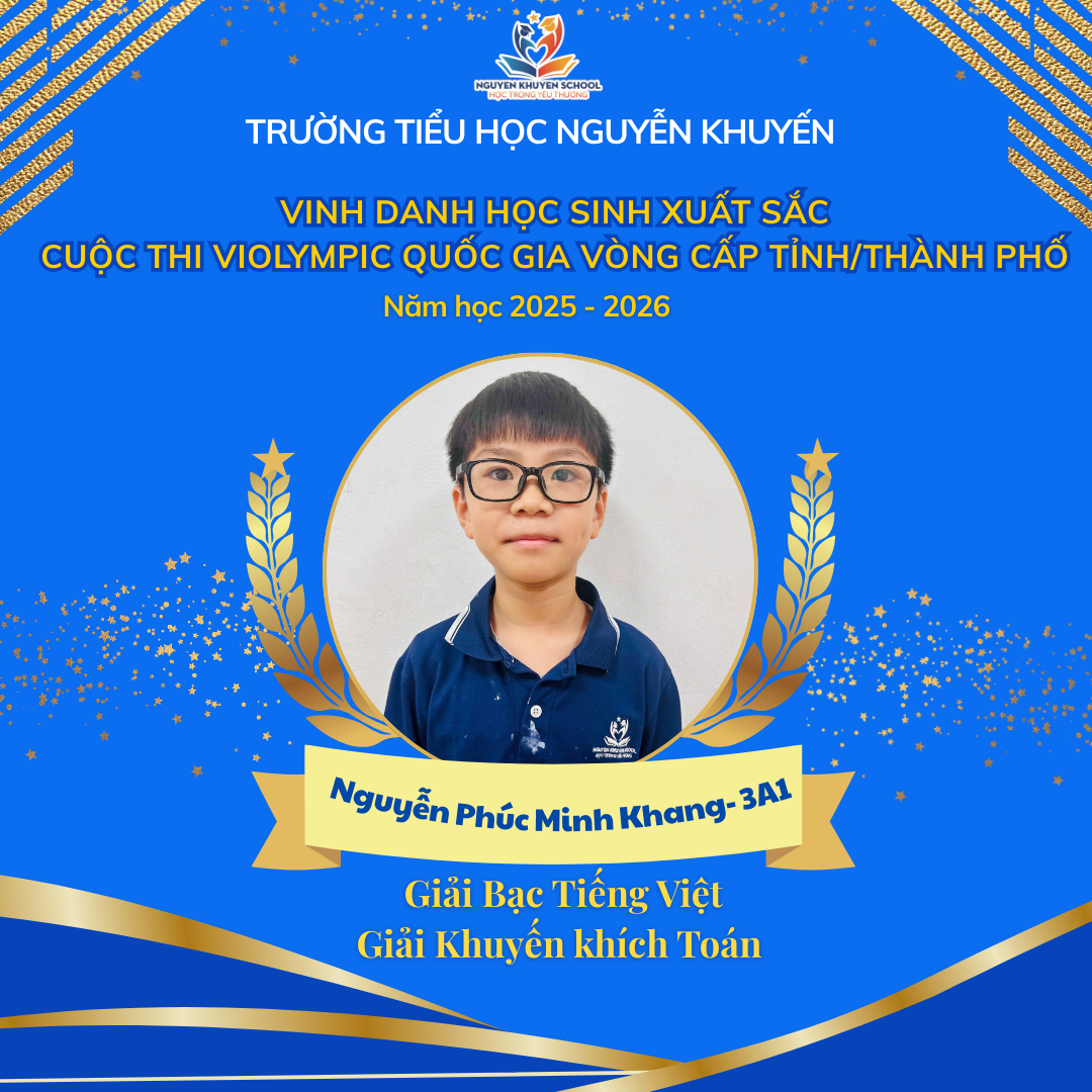 Vượt qua những giây phút so tài đầy gay cấn và kịch tính, các bạn nhỏ trường Nguyễn Khuyến đã xuất sắc rinh về "cơn mưa giải thưởng". Nhà trường xin chúc mừng những gương mặt vàng đã xuất sắc chinh phục Violympic cấp Tỉnh/Thành phố năm học 2025 - 2026.