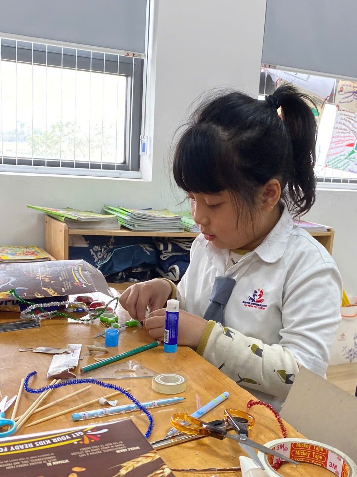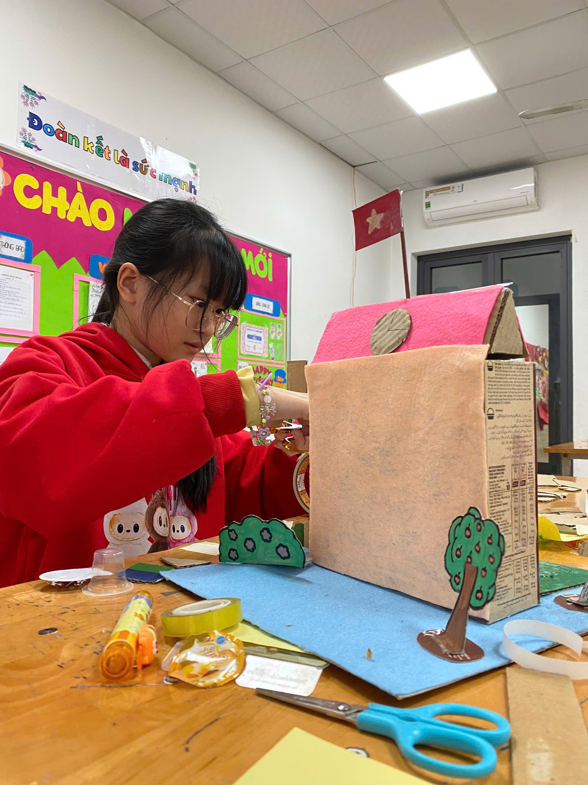 Một trong những hoạt động được các em học sinh trường Tiểu học Nguyễn Khuyến yêu thích nhất là các giờ học thiết kế và chế tạo sản phẩm STEM. Từ việc sử dụng các nguyên vật liệu đơn giản như: giấy, bìa carton, các em học sinh lớp 4A tự làm mô hình trường học vô cùng độc đáo.