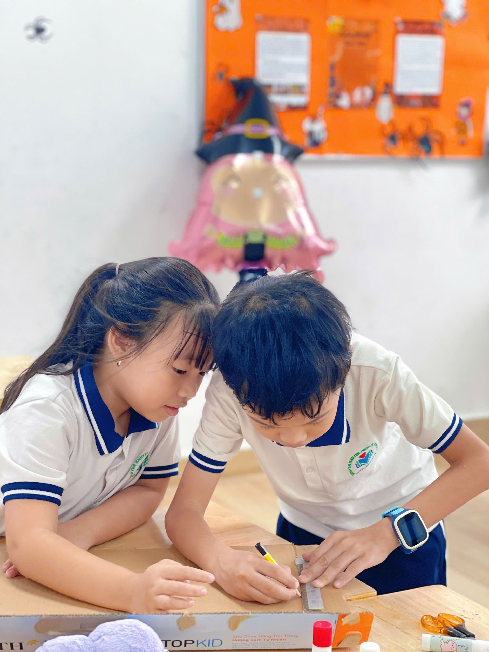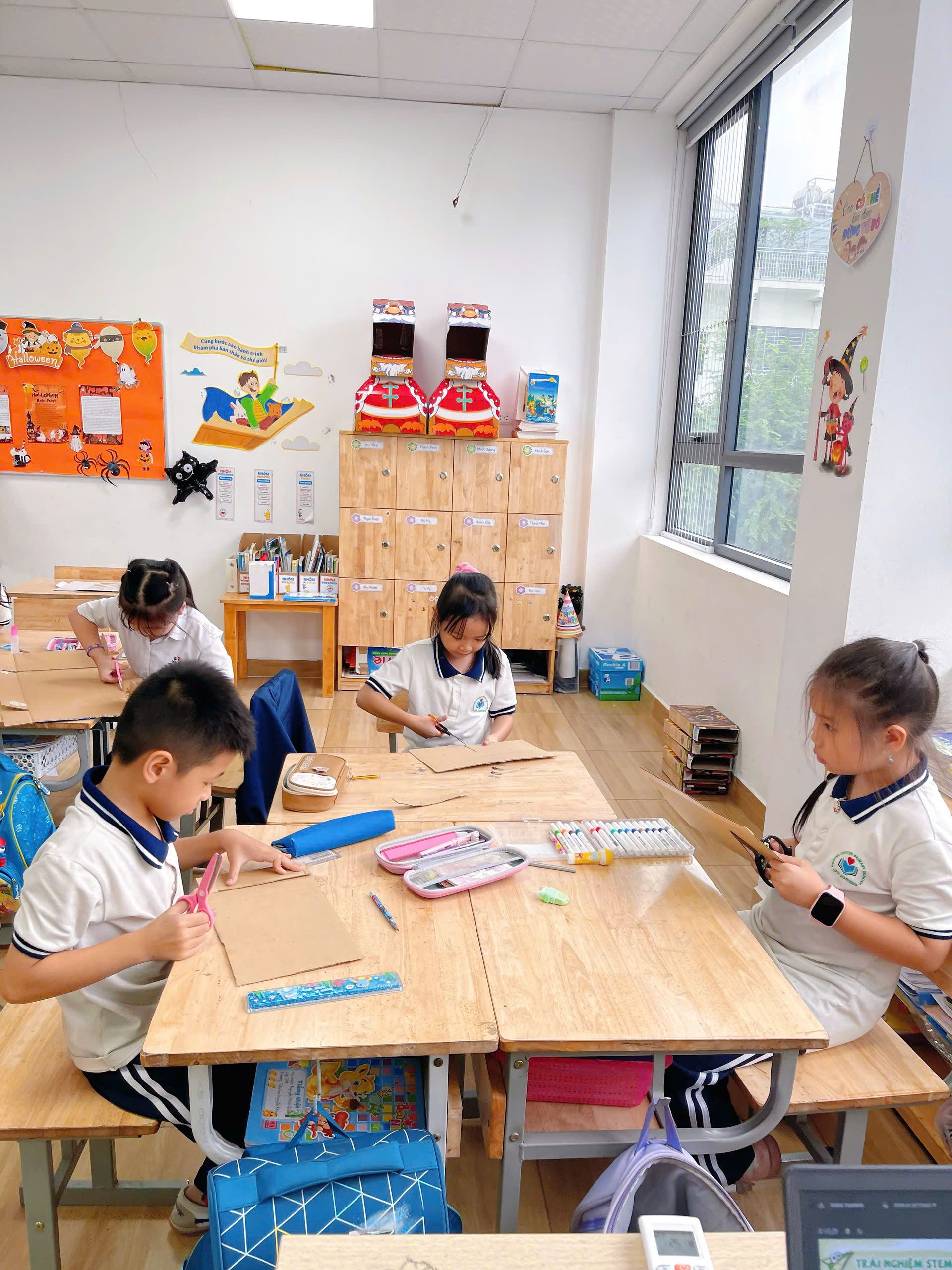 Trong không khí hào hứng của tiết học STEM, các bạn nhỏ lớp 2A1 đã trở thành những nhà khoa học nhỏ tuổi, say mê khám phá và sáng tạo. Tiếng cười nói rôm rả vang lên khắp lớp học khi các con được thực hành để tạo nên sản phẩm.