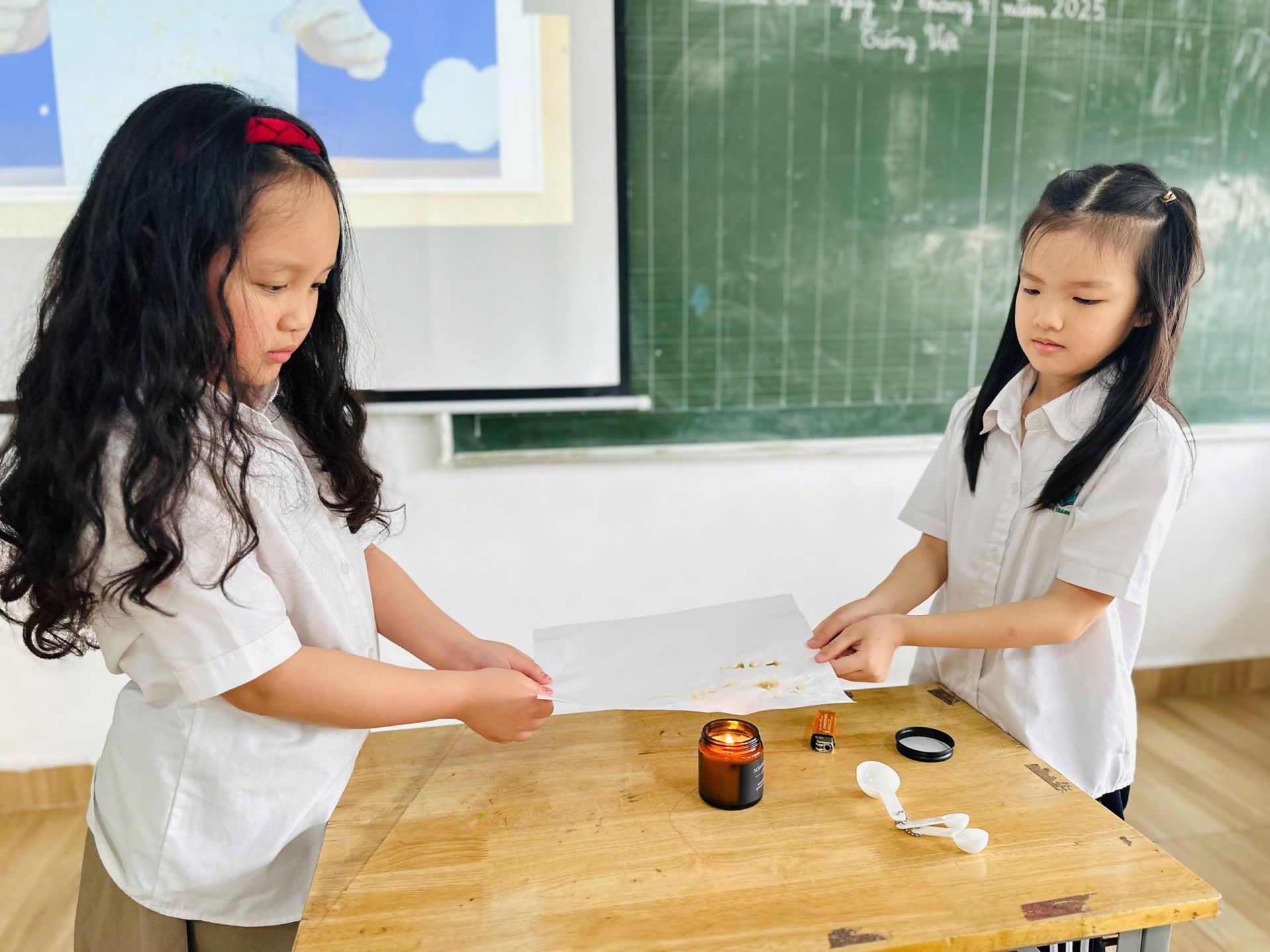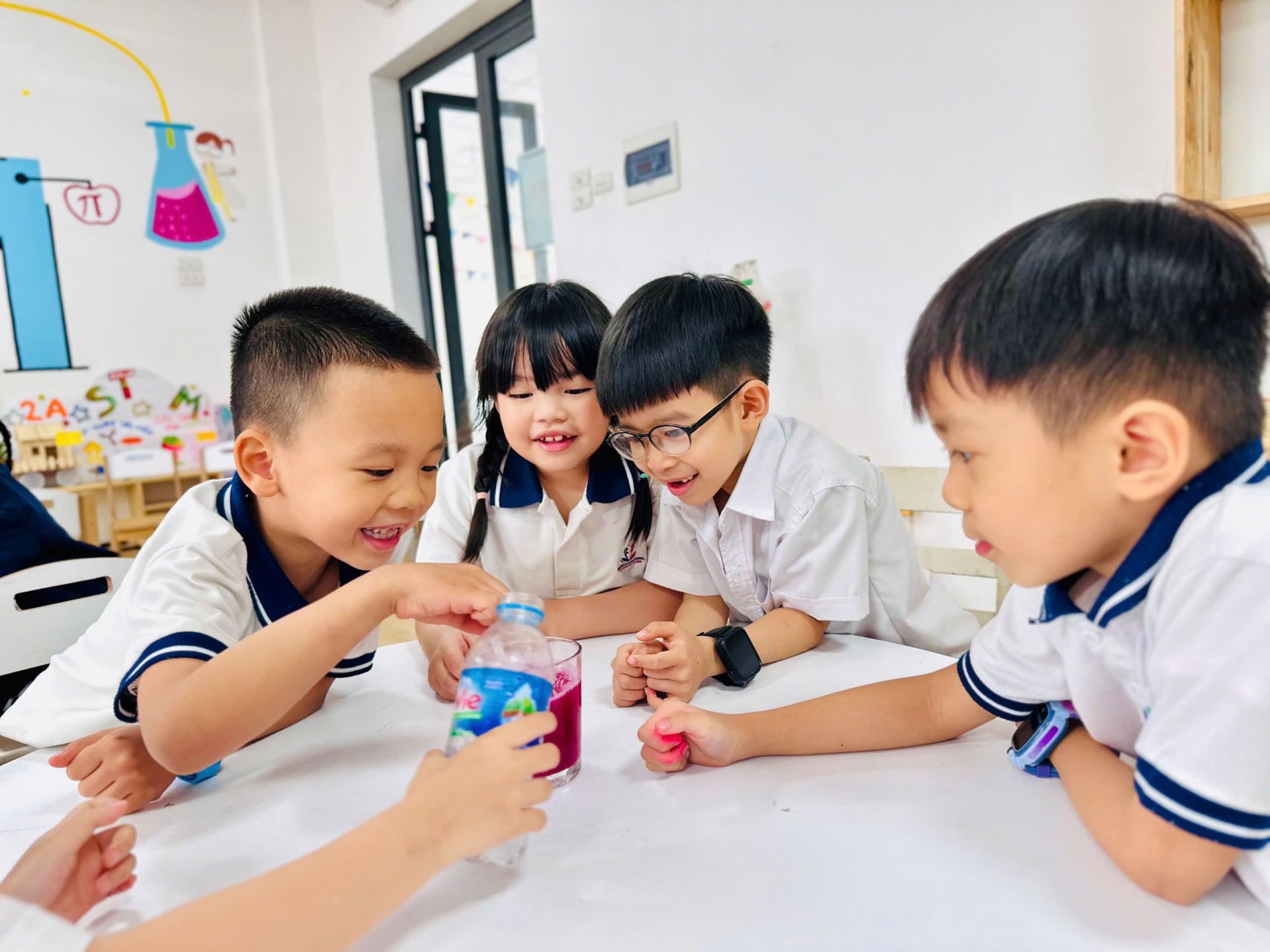 Tại tiết học STEM, chúng mình đều "mắt chữ O, mồm chữ A" giải mã mật thư mà cô giáo giao nhiệm vụ và khám phá một thí nghiệm vô cùng “ảo diệu” với chủ đề: “Mực tàng hình”. Đây là tiết học chúng mình đều rất mong chờ, lớp học rộn ràng tiếng cười.