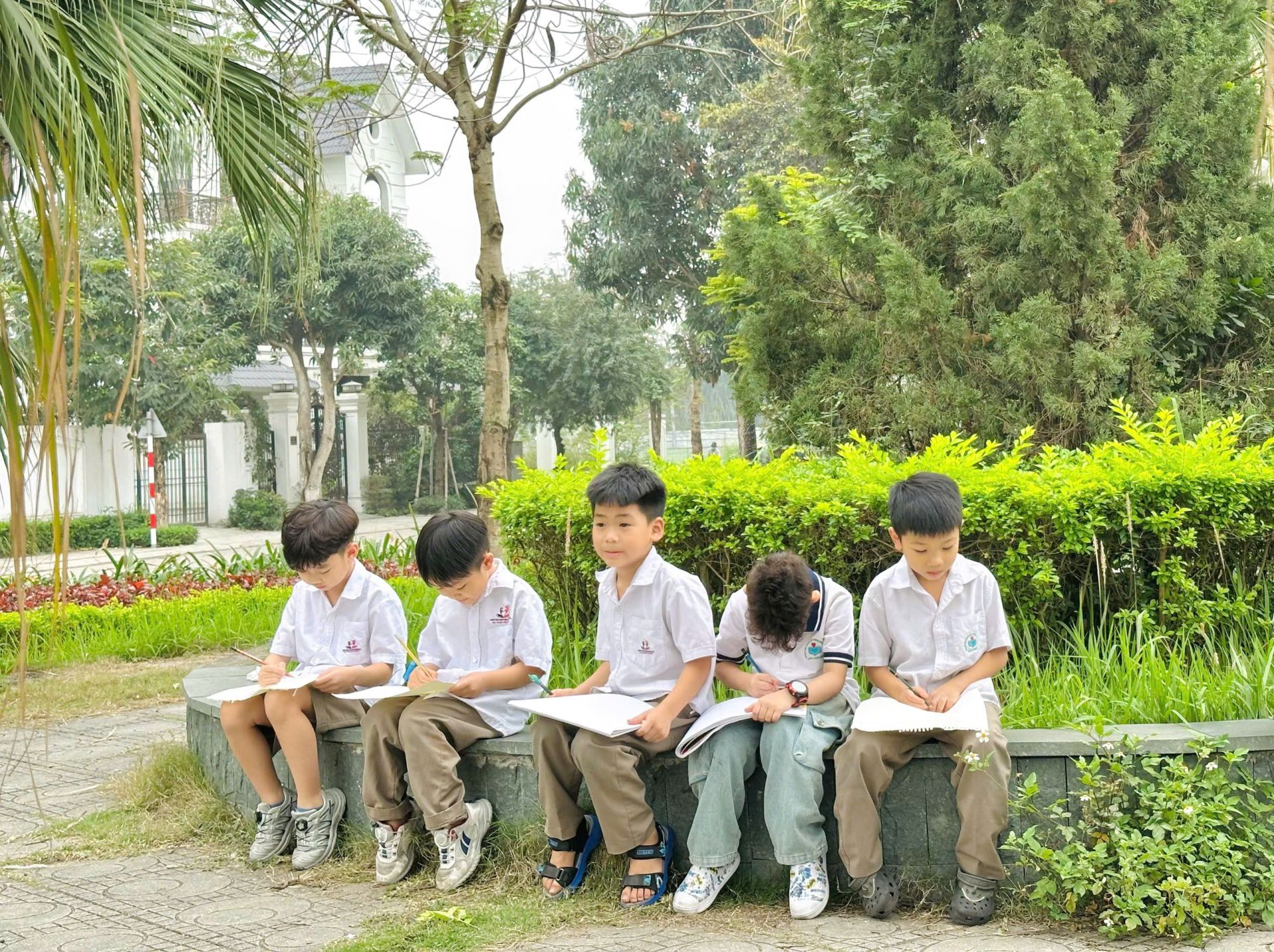 Thiên nhiên hiện lên qua những trang sách đầy màu sắc, từ màu xanh của cây lá, màu vàng của nắng đến màu xanh biếc của biển cả. Không chỉ là những hình ảnh tĩnh lặng, các bạn học sinh trường Tiểu học Nguyễn Khuyến còn được cảm nhận thực tế qua âm thanh tiếng chim hót, tiếng gió thổi, tô, vẽ, quan sát và học cách miêu tả vẻ đẹp thiên nhiên