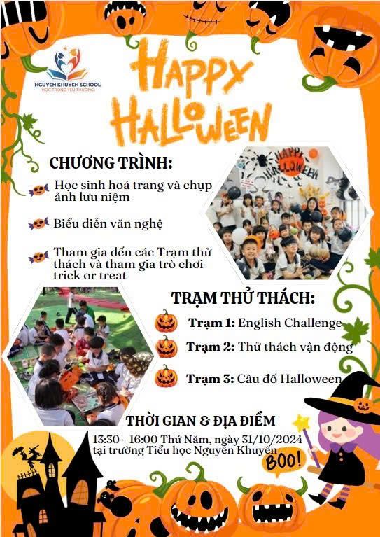 Để các em được hòa mình vào không khí Halloween và tìm hiểu về lễ hội trên thế giới, trường Tiểu học Nguyễn Khuyến tổ chức Lễ hội Halloween. Thông tin chi tiết cụ thể như sau...