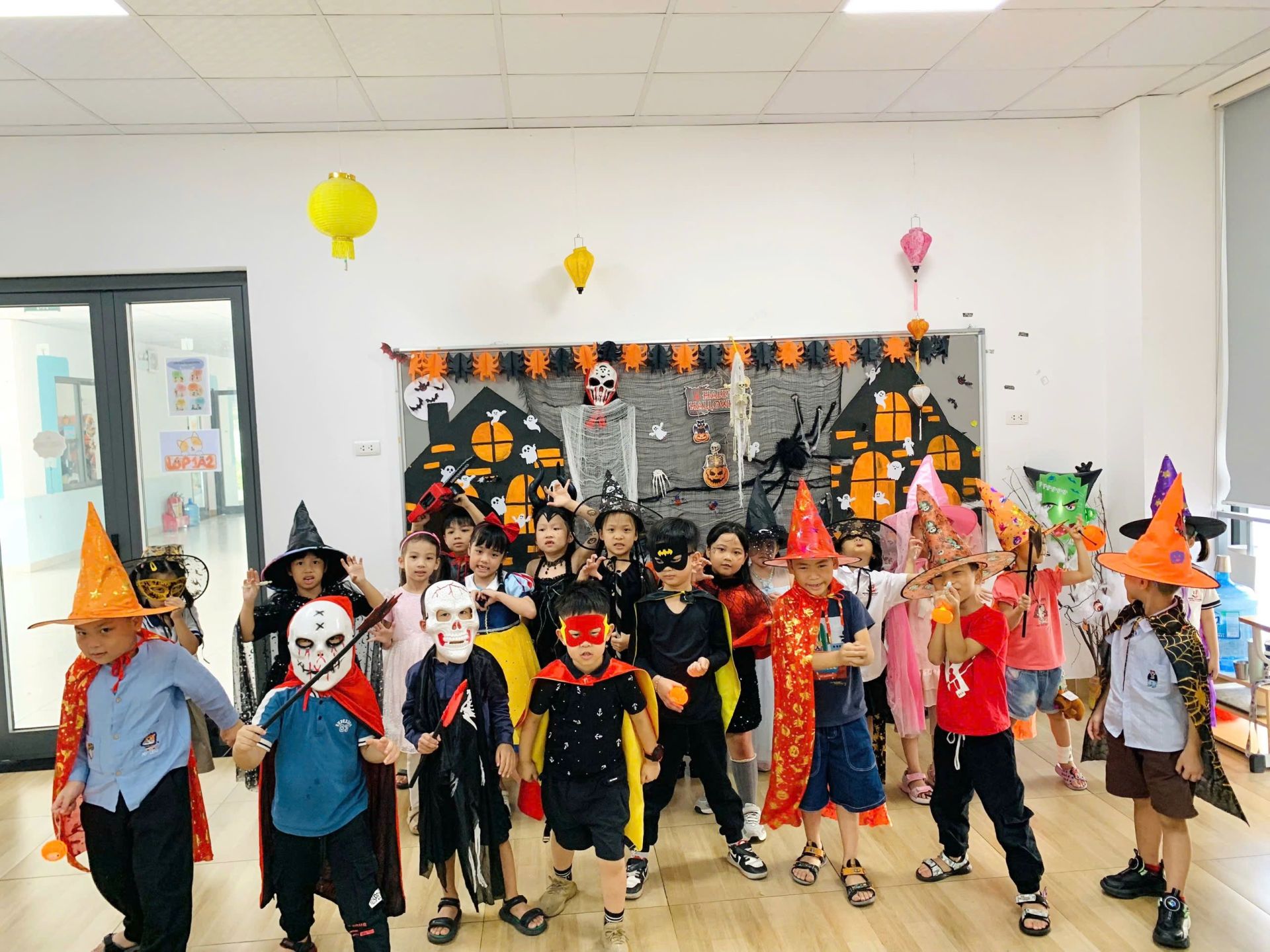 Các bạn học sinh đã thật sự tỏa sáng khi hoá trang với những bộ trang phục độc đáo và sáng tạo. Từ những cô phù thủy xinh đẹp, những chàng ma cà rồng đáng sợ, những siêu nhân dũng mãnh, đến những chú bí ngô biết đi,…