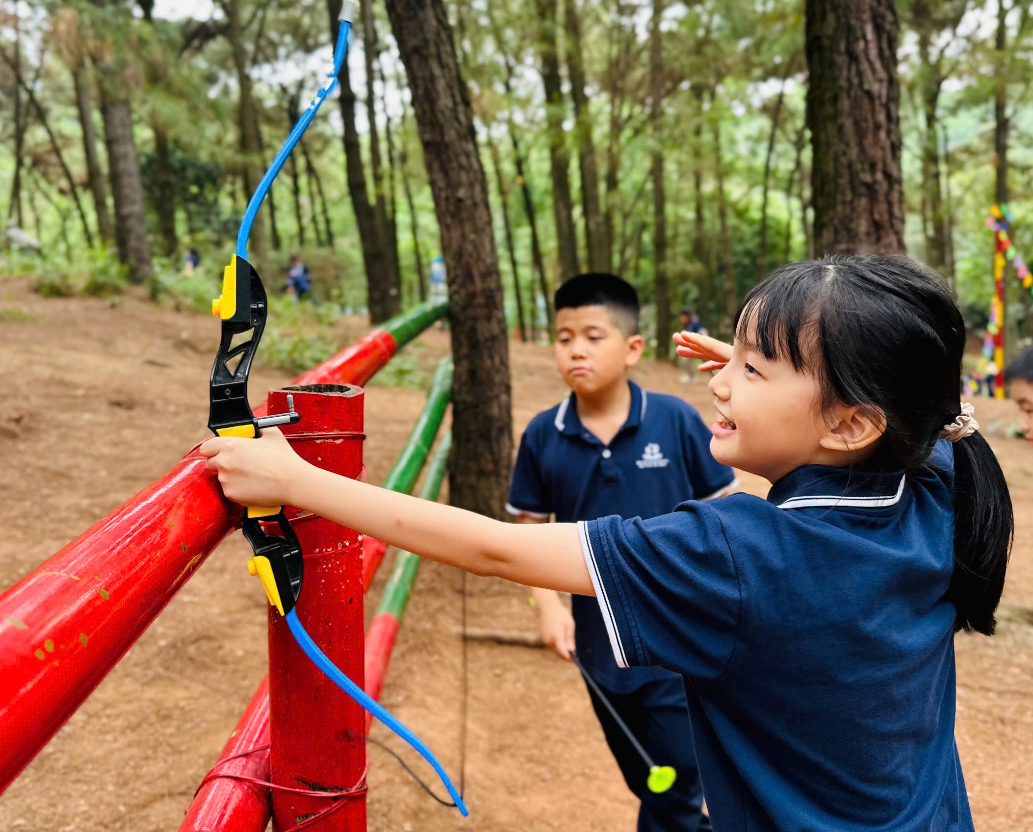 Vừa đặt chân đến Bản Rõm, các bạn học sinh Nguyễn Khuyến đã 'bùng nổ' năng lượng và quét sạch chuỗi thử thách như: Vượt đường hầm, leo núi, bắn cung, nhóm lửa,… vừa rèn luyện thể lực và thắt chặt thêm tình đồng đội.