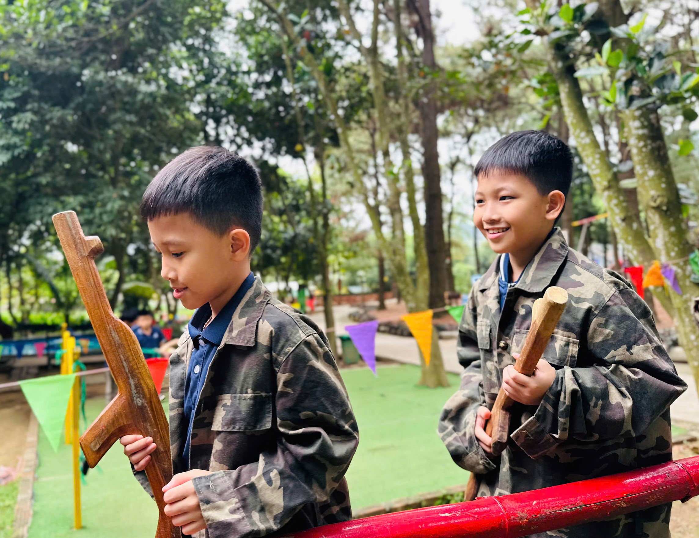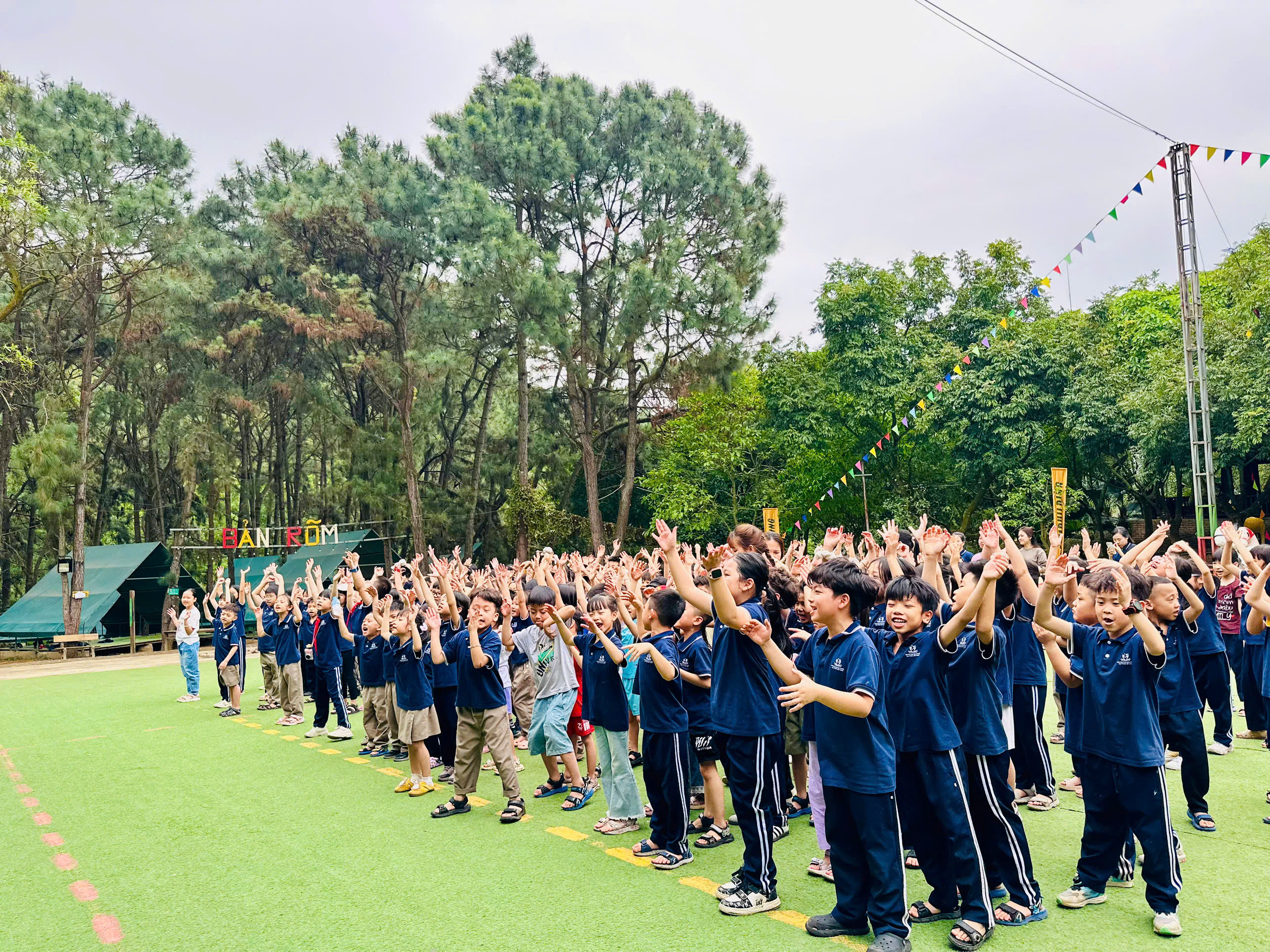 Một ngày các bạn học sinh trường Tiểu học Nguyễn Khuyến rời xa sách vở, rờ xa khói bụi thành phố để hóa thân thành những "nhà thám hiểm" thực thụ giữa đại ngàn tại khu du lịch sinh thái Bản Rõm (Sóc Sơn, Hà Nội).