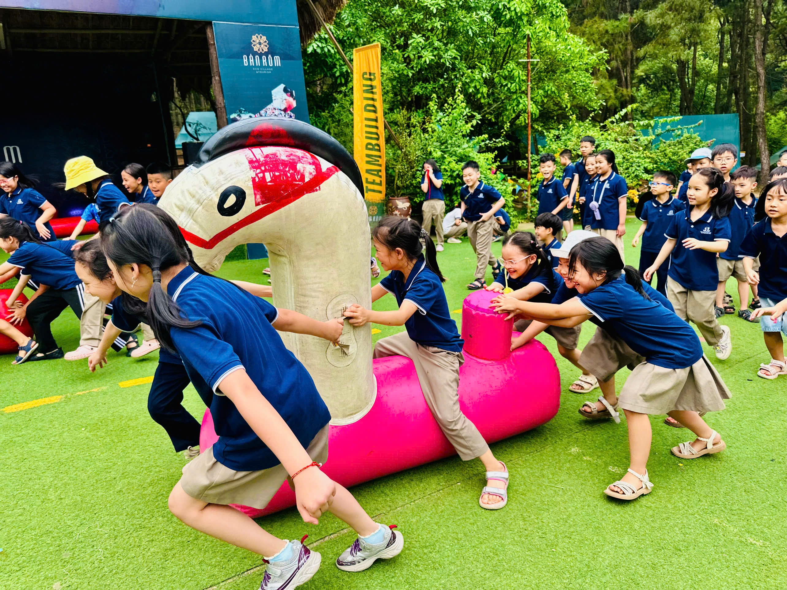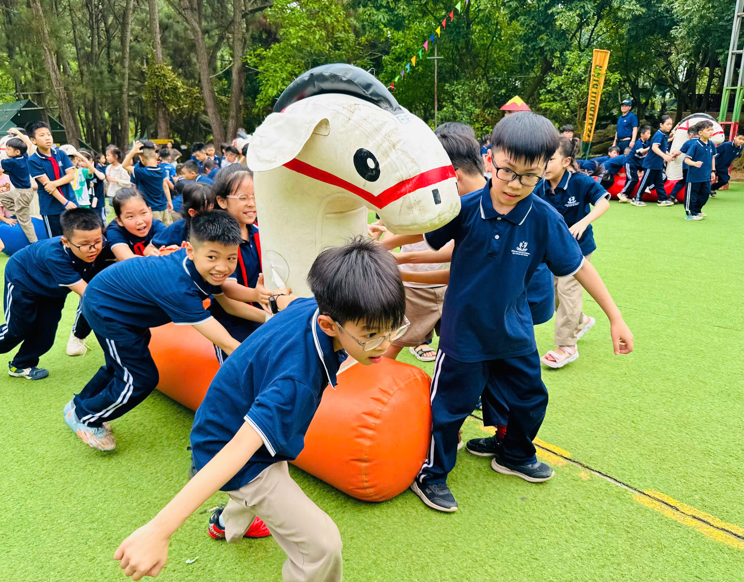 Hoạt động teambuilding rộn rã tiếng cười đã kéo các lớp lại gần nhau hơn. Không còn bất kỳ khoảng cách nào giữa các bạn nhỏ, chỉ còn những cái ôm siết chặt, những nụ cười giòn tan và tinh thần đồng đội "cháy" hết mình!