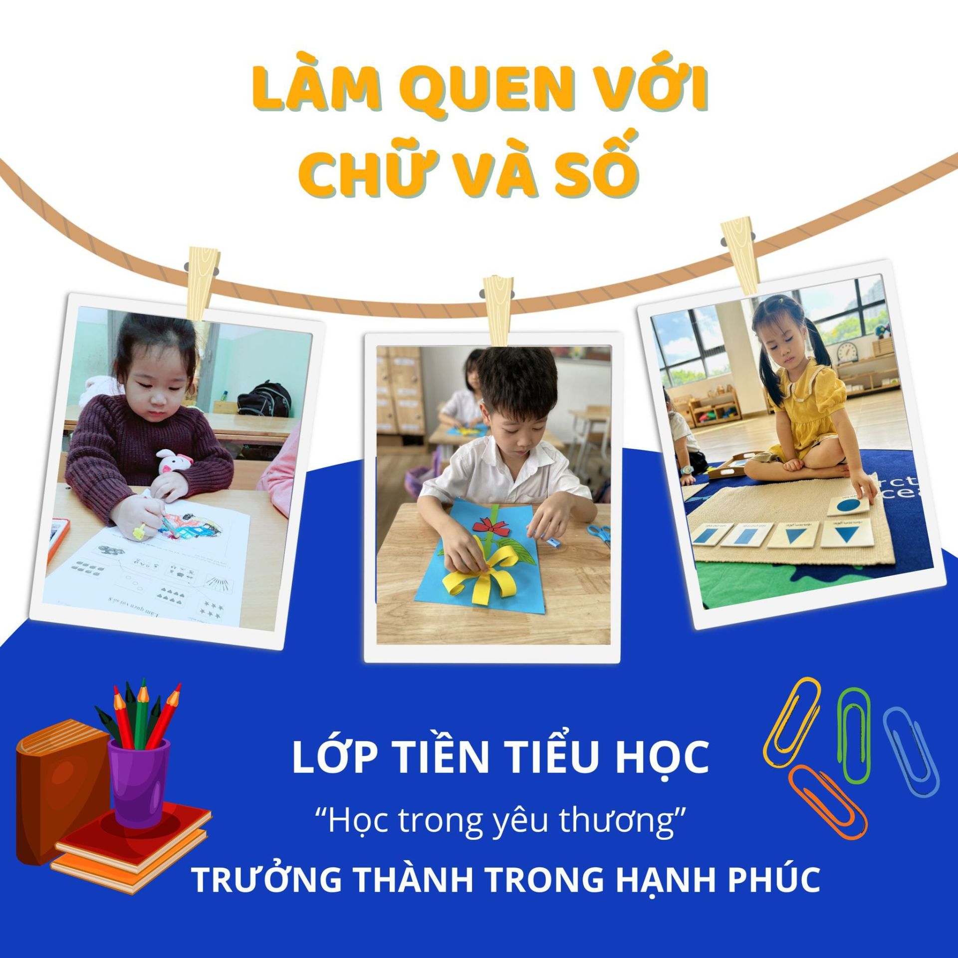 - Môi trường học hạnh phúc với không gian thiết kế hiện đại, rộng rãi, giúp con yêu thích việc đến trường. Sỹ số lớp tối đa 20 học sinh/lớp, các bé được quan tâm và có cơ hội phát triển tối đa khả năng của bản thân.