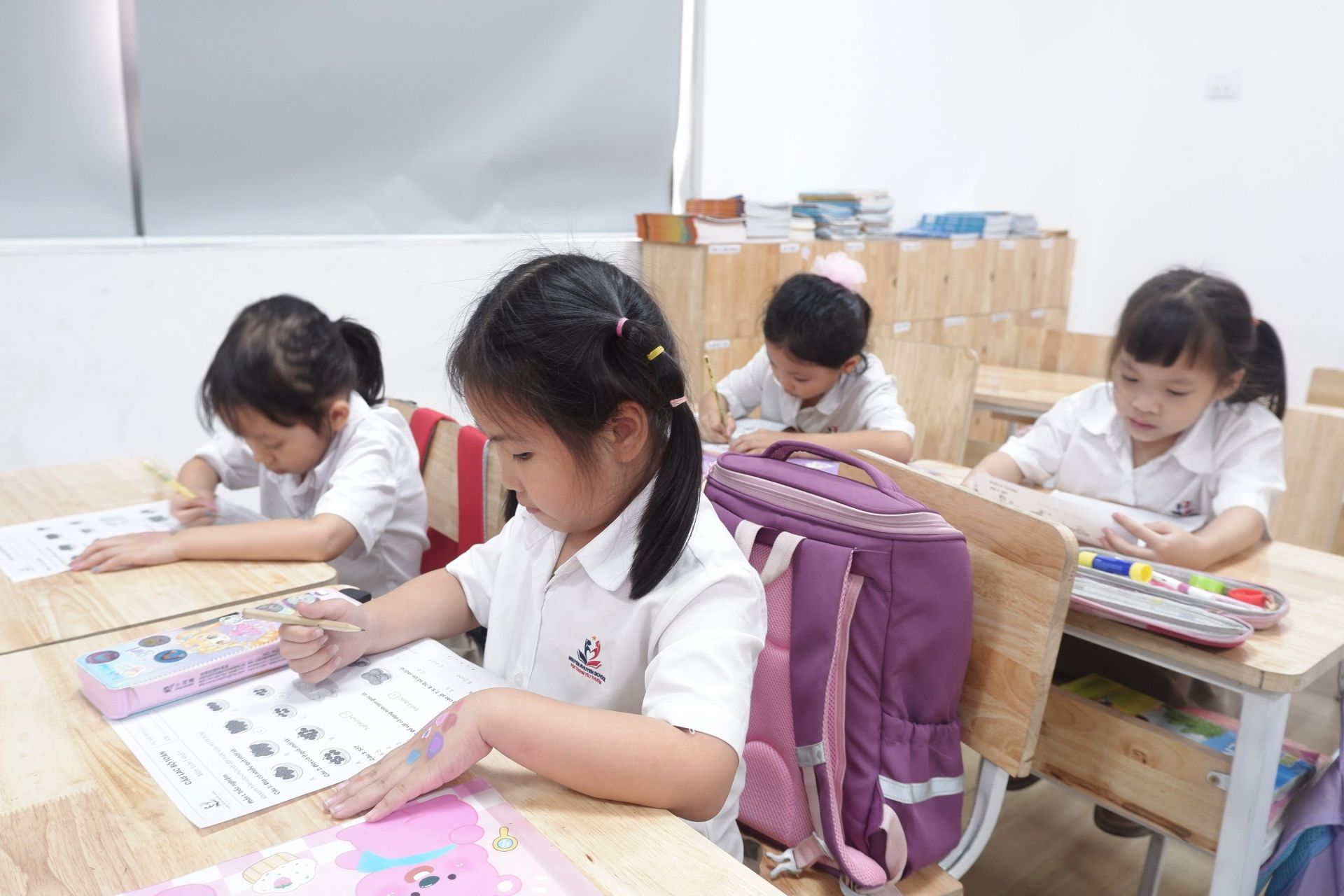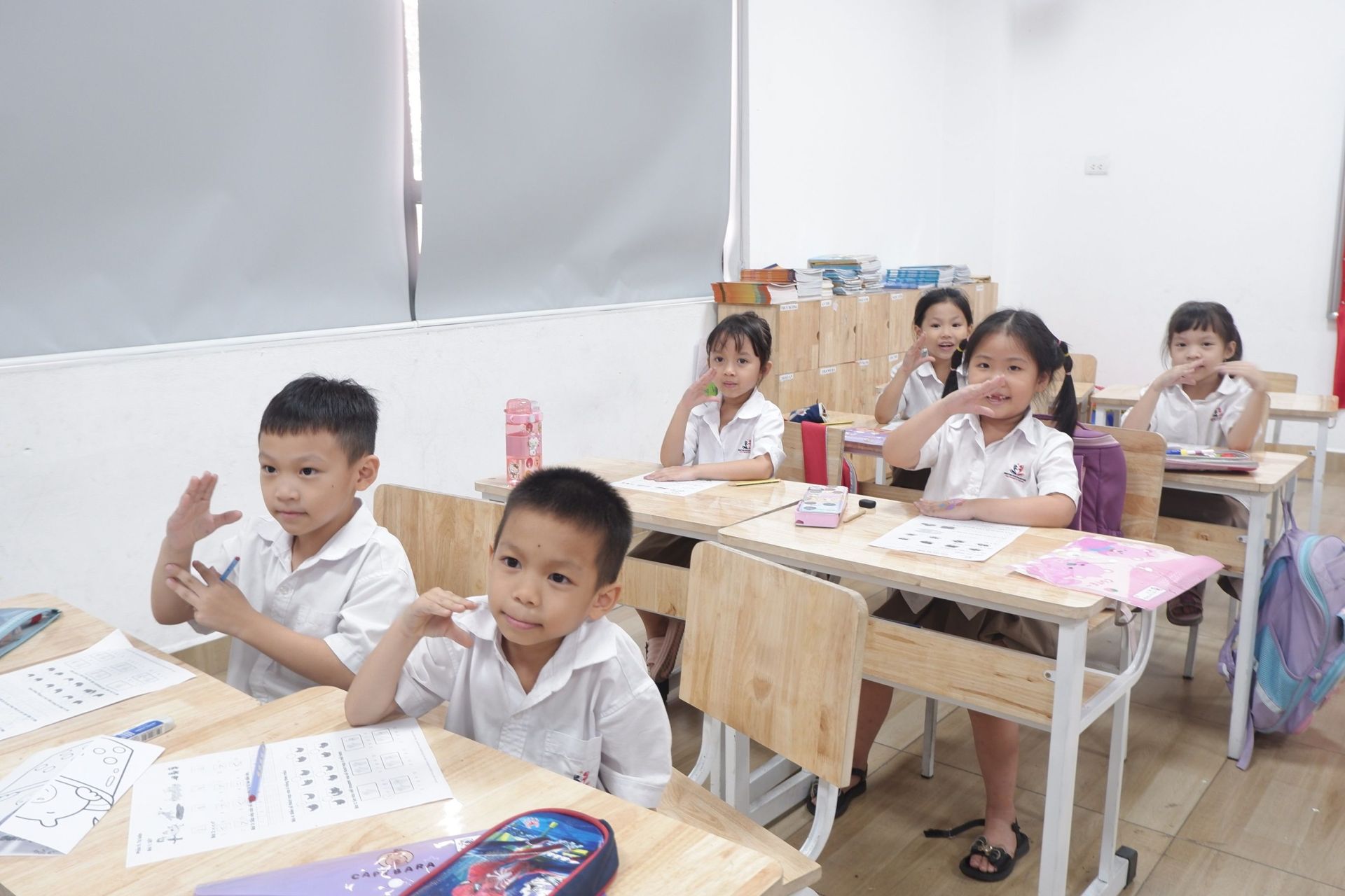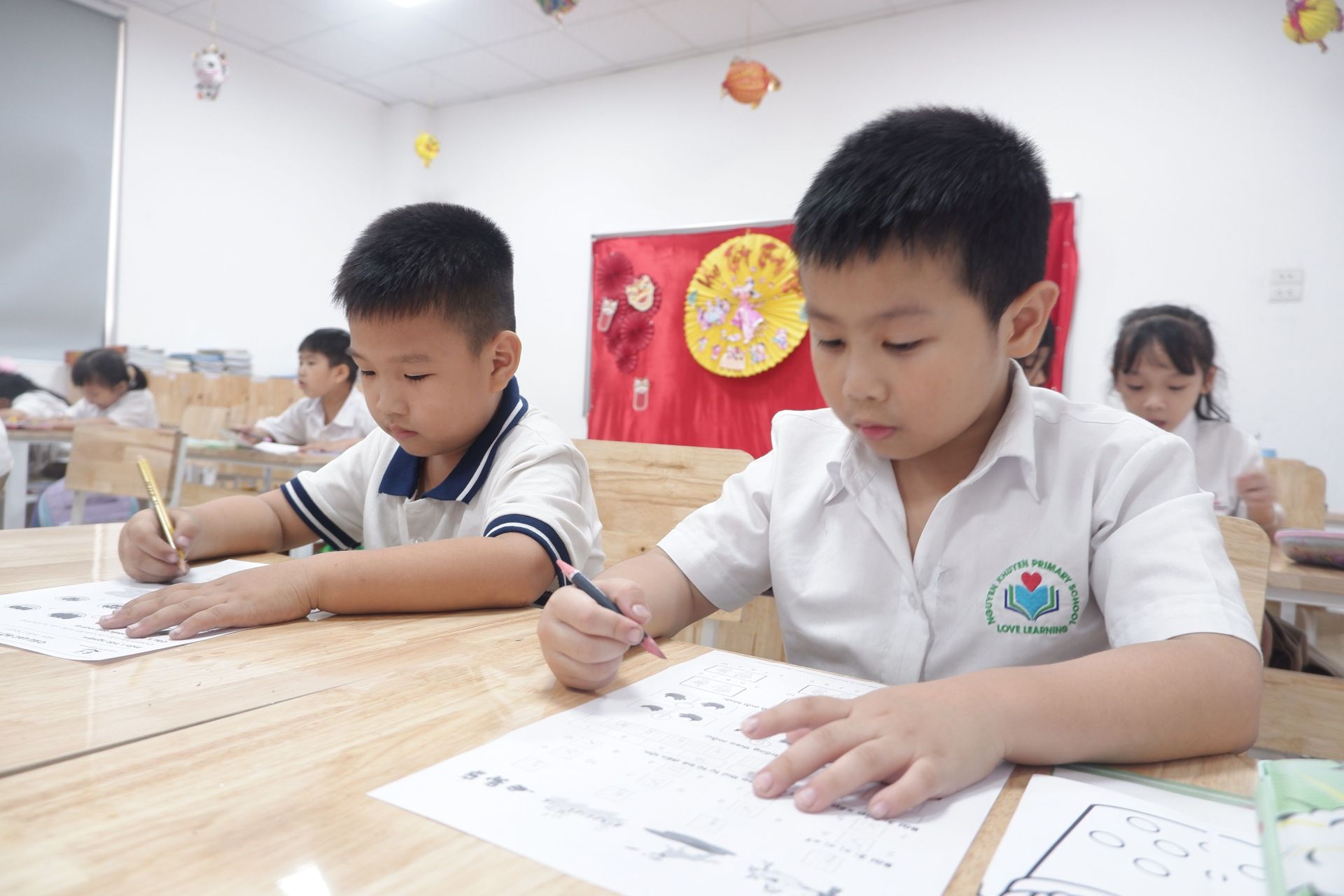 Trường Tiểu học Nguyễn Khuyến trang bị đầy đủ tài liệu, dụng cụ học tập và phương pháp giảng dạy, giúp học sinh tiếp cận Toán học một cách hứng thú và hiệu quả. Các bạn học sinh được học Toán nâng cao thông qua các trò chơi, hoạt động, học tập bằng niềm yêu thích và học cách tư duy có chiều sâu, hiểu ý nghĩa của bài học, loại bỏ cách giải toán rập khuôn, máy móc.
